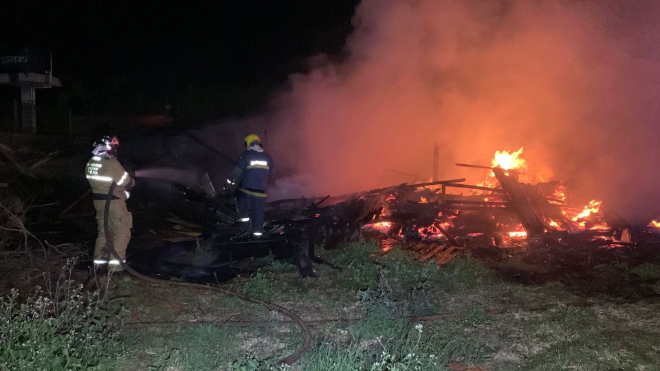 Casa de madeira é destruída por incêndio no Jardim Gramado em Cascavel