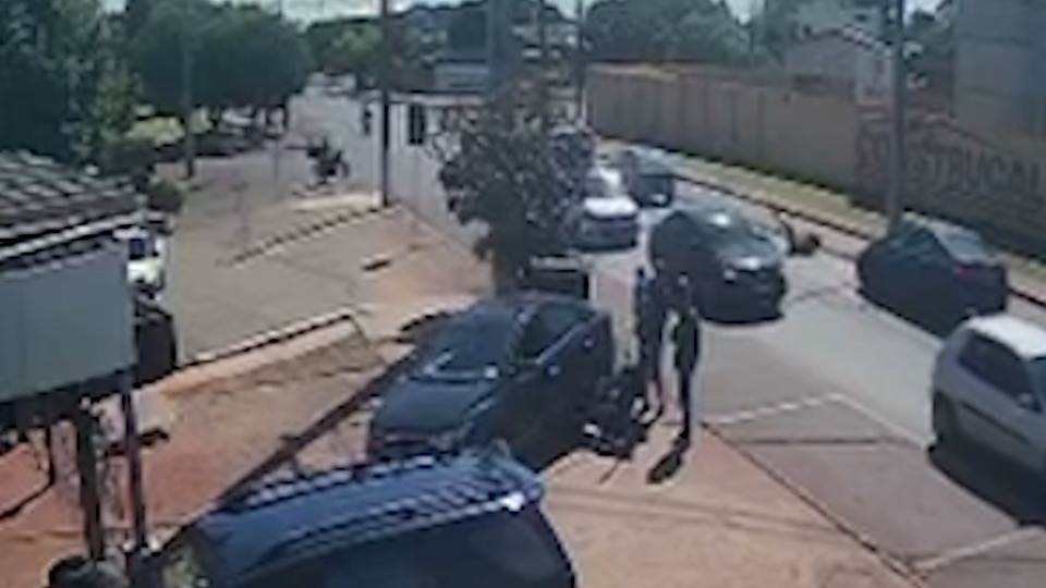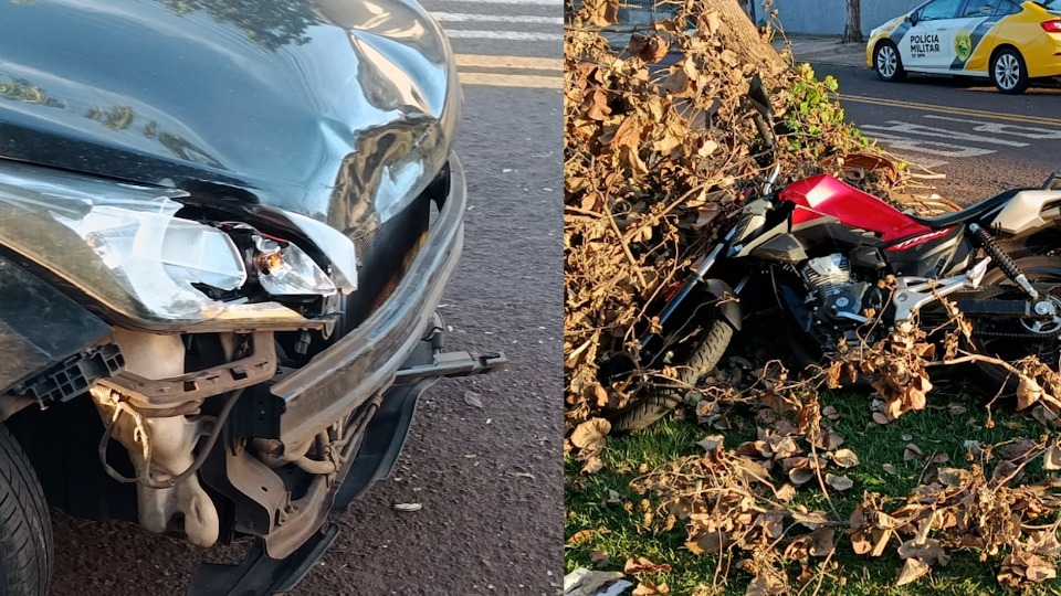 Moto avança sobre calçada após acidente com carro em cruzamento de Toledo