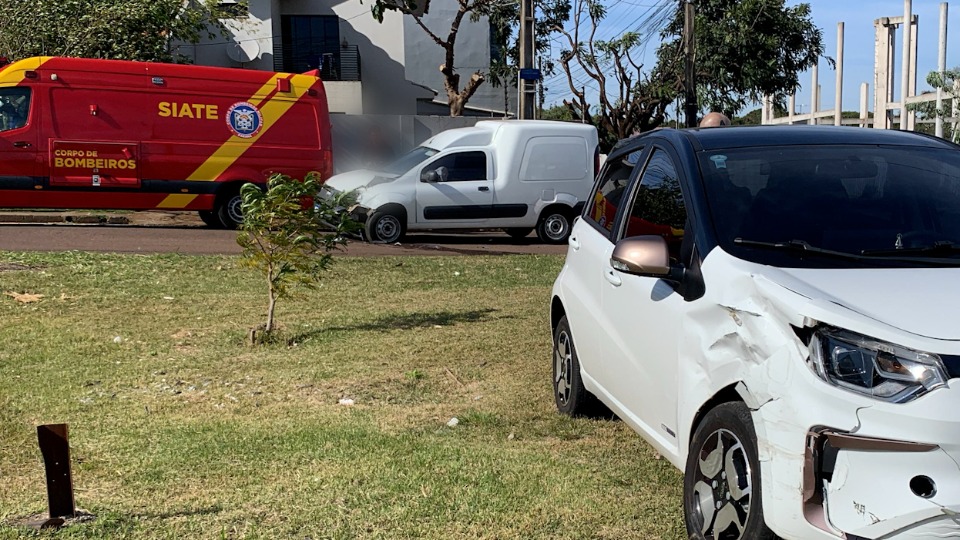 Acidente entre Fiorino e carro elétrico mobiliza socorristas em Cascavel