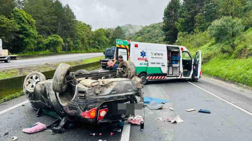 Capotamento na BR-116 deixa dois feridos e provoca lentidão em Curitiba