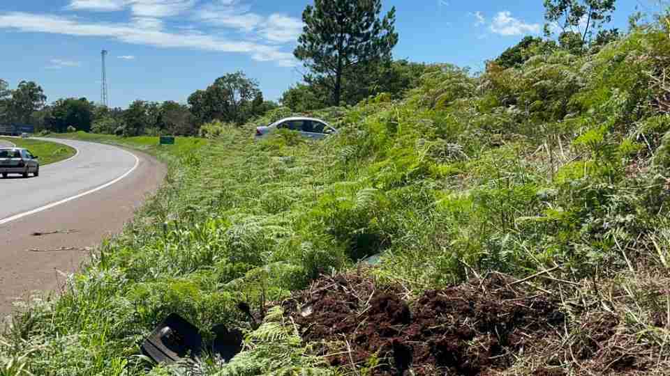 Carro capota na BR-163 e mulher fica ferida em Cascavel