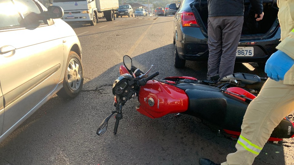 Motociclista fica ferido após batida entre carro e moto em Cascavel
