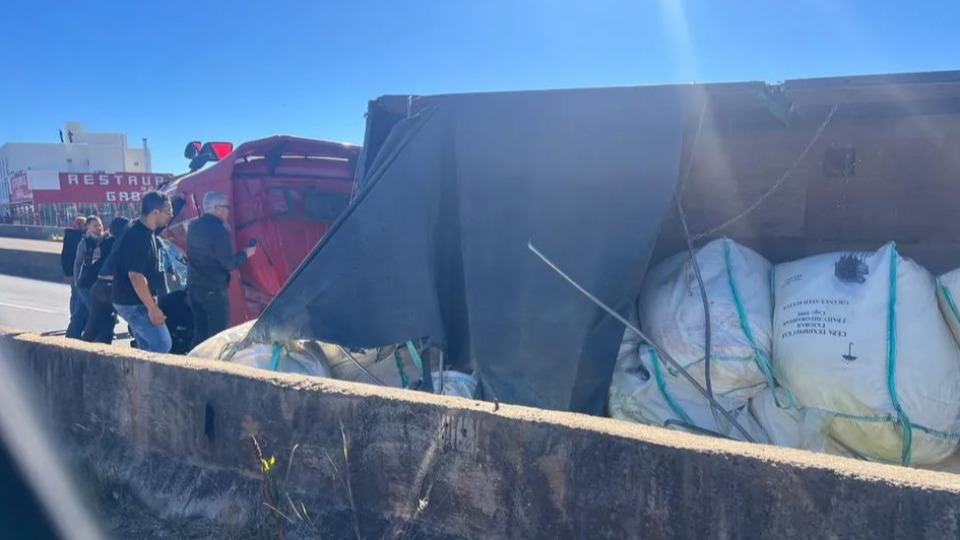 Carreta carregada com enxofre tomba na BR-376 em Mauá da Serra