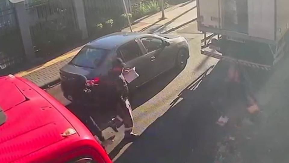 Câmera flagra roubo de caminhão em frente a supermercado em Foz do Iguaçu