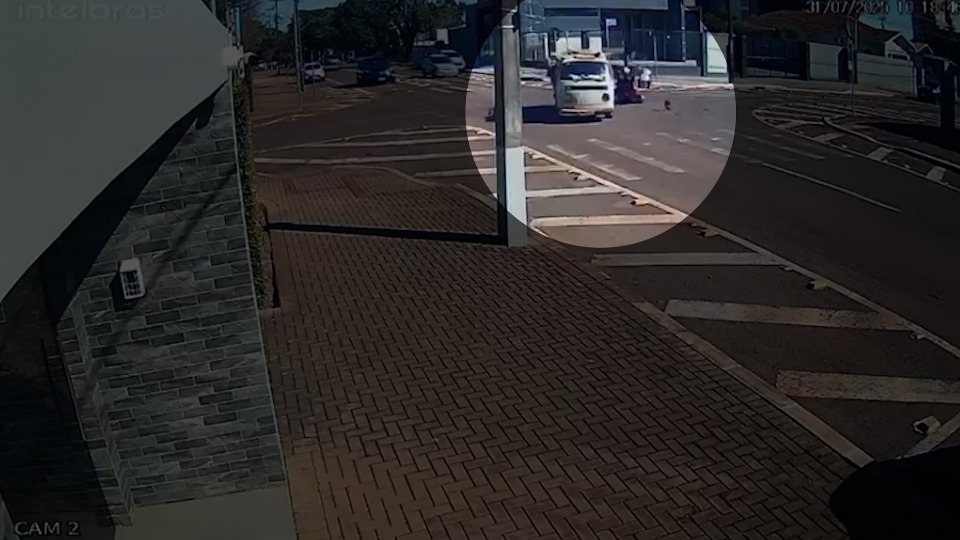Vídeo: motociclista fica ferido após batida com Kombi no Centro de Cascavel