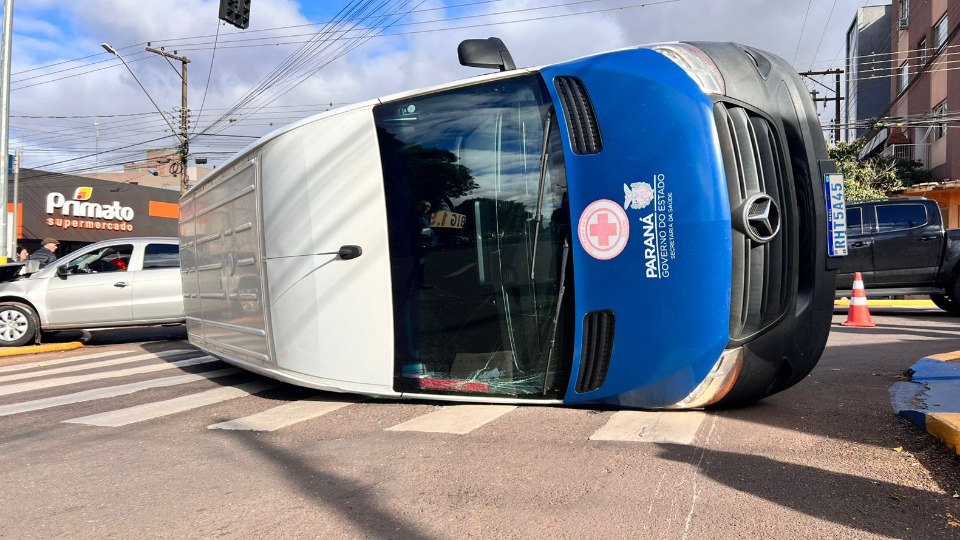 Motorista fica ferido após batida entre van da saúde e carro em Toledo