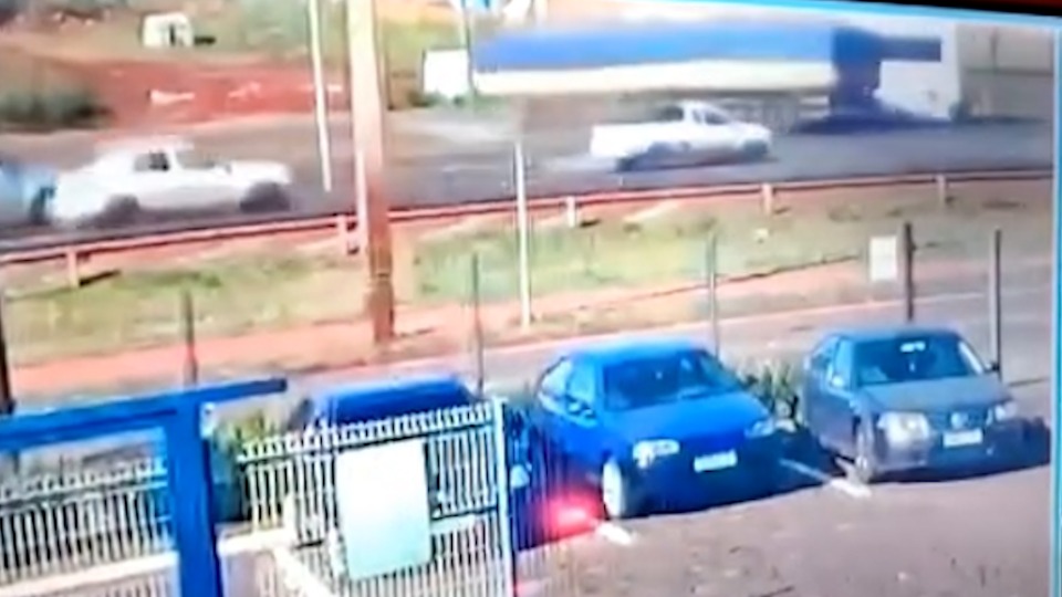 Imagens mostram caminhões na contramão da BR-277 em Balsa Nova