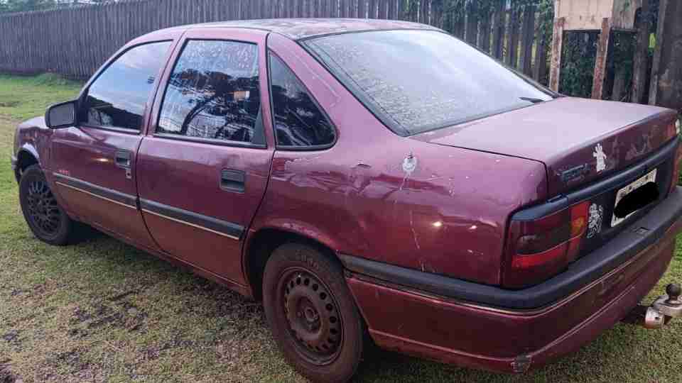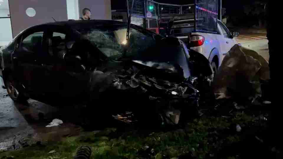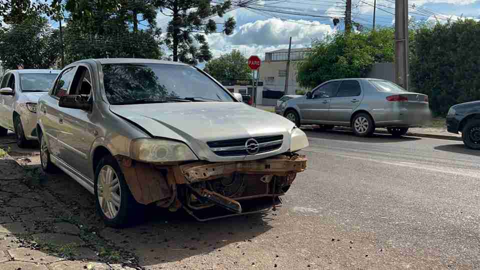Carro apresenta falha nos freios e fica preso em toco de árvore em Cascavel
