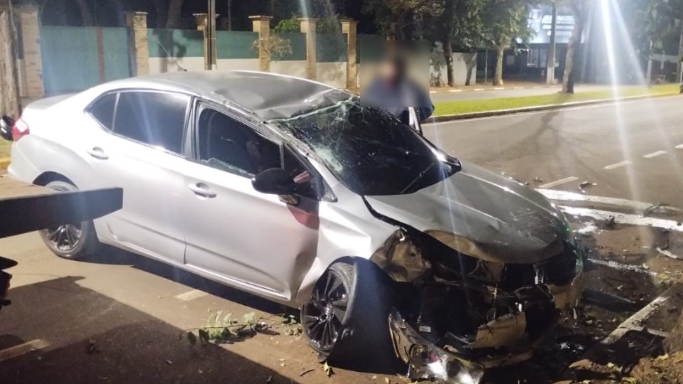 Jovem bate carro em árvore e capota em Toledo