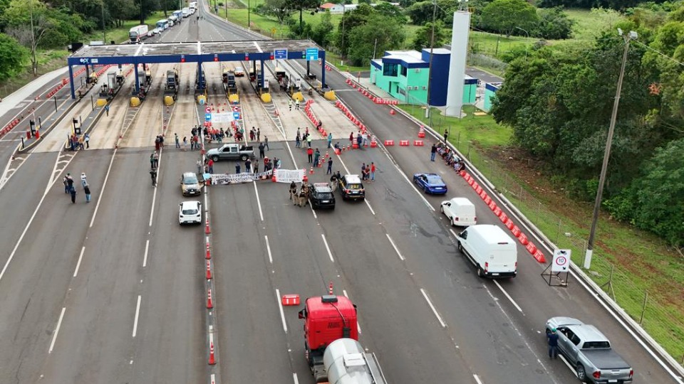 Produtores de leite bloqueiam praça de pedágio de Laranjeiras do Sul na BR-277