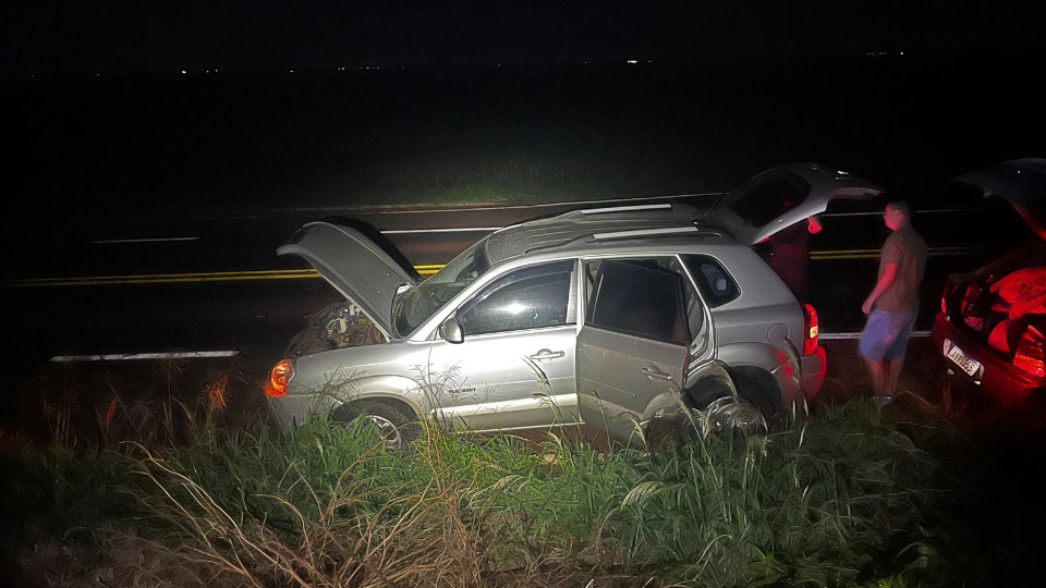 Carro fica preso em canteiro no Trevo da Portal, na BR-277, em Cascavel