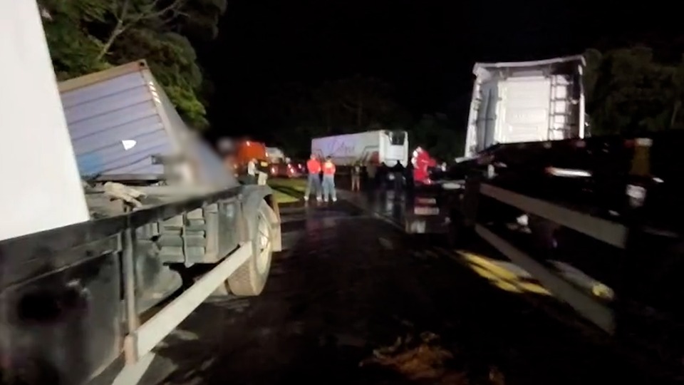 Acidente com quatro caminhões deixa motorista morto na BR-476, em Paulo Frontin