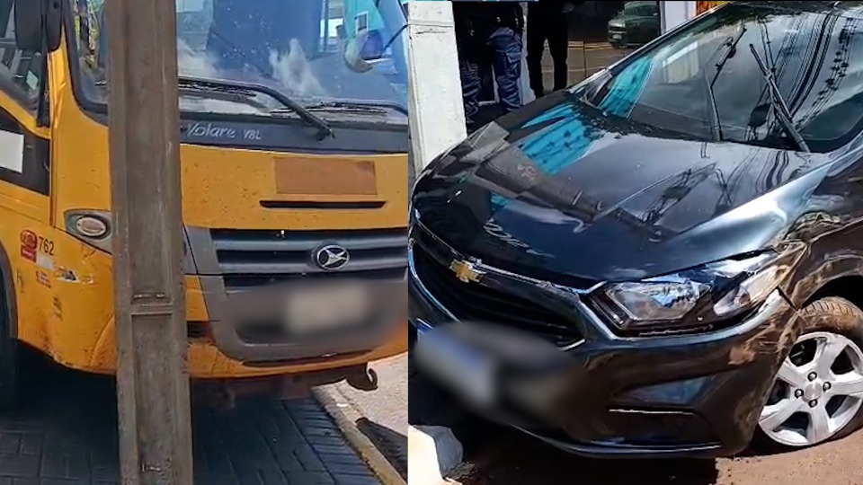 Micro-ônibus atinge carros estacionados e derruba bicicletário em Toledo