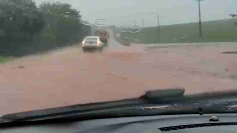 Trecho da BR-277 fica alagado entre Céu Azul e Matelândia após forte chuva