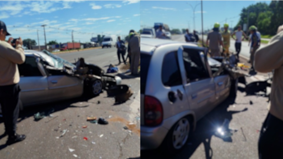 Batida entra carro e caminhão na BR-277 em Foz do Iguaçu deixa homem ferido