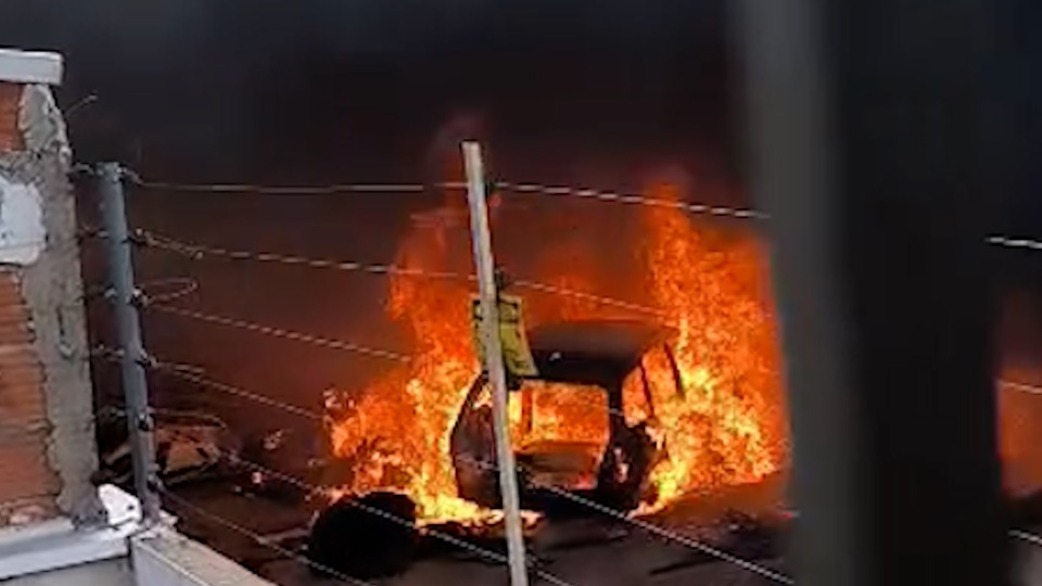 Vídeo mostra carro em chamas em Cascavel