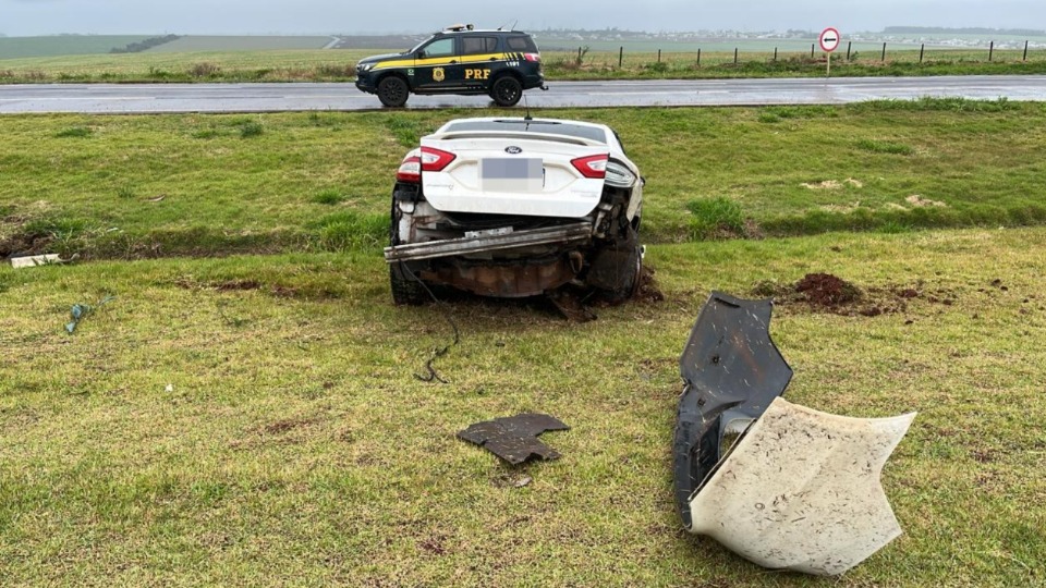 Carro aquaplana e sai da pista na BR-163 em Cascavel; motorista não se feriu