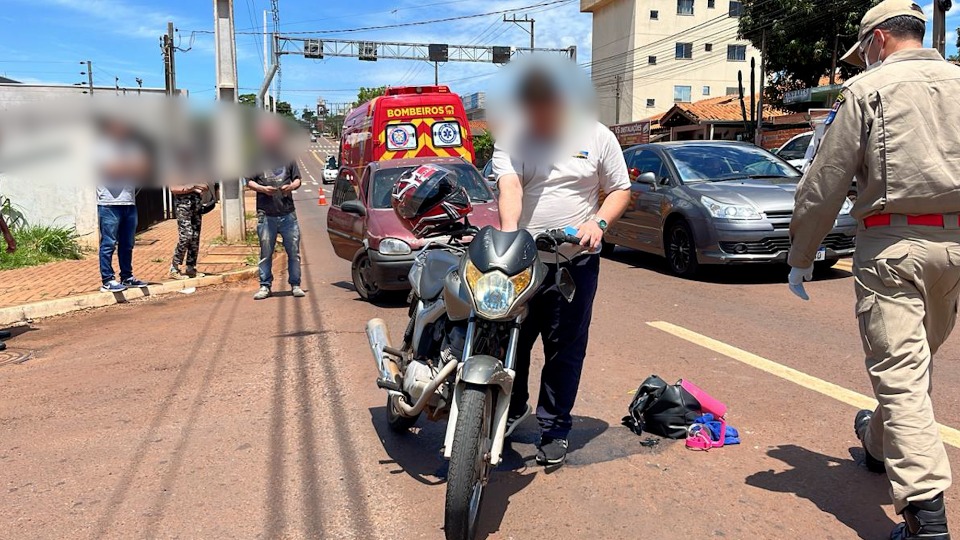 Motociclista fica ferida após batida entre carro e motocicleta em Cascavel