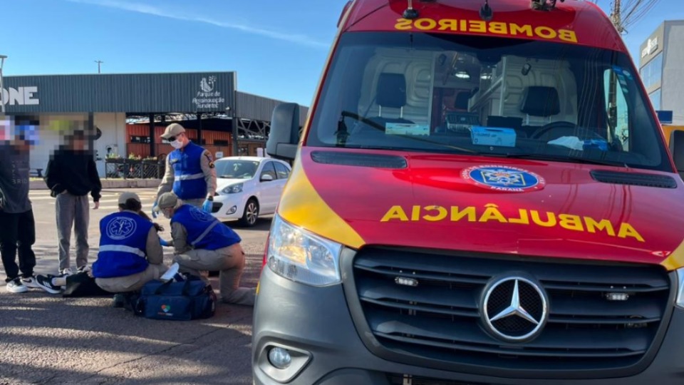 Batida entre carro e moto deixa jovem de 20 anos ferida em Cascavel