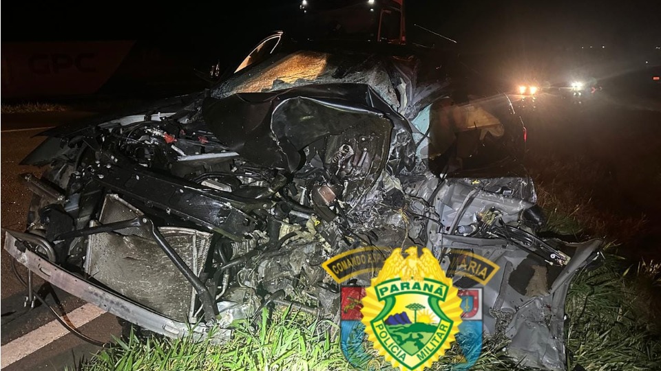 Carro fica destruído em acidente na PR-986 em Rolândia