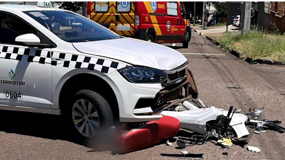 Motociclista é arremessado após batida com táxi no Bairro Coqueiral, em Cascavel; vídeo