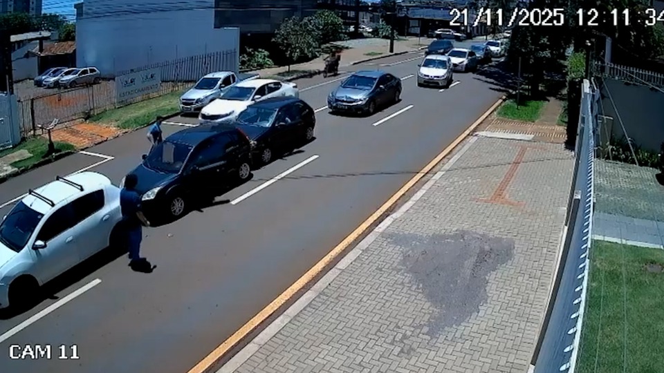 Câmera flagra engavetamento com quatro carros no Centro de Cascavel
