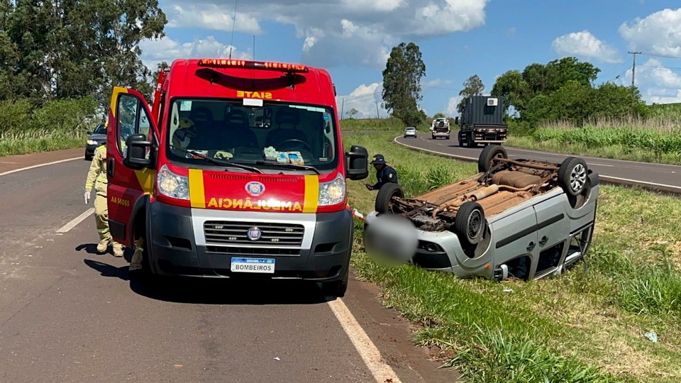 Carro capota na BR-467 e motorista fica ferido em Cascavel