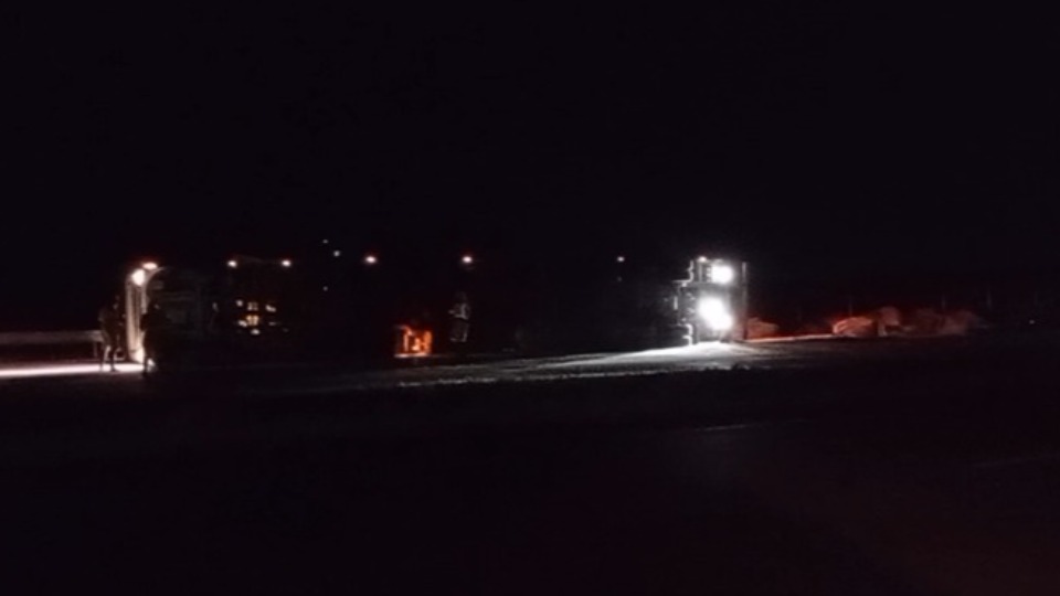 Carreta tomba na BR-163 entre Santa Lúcia e Santa Tereza do Oeste