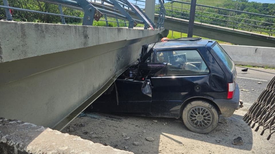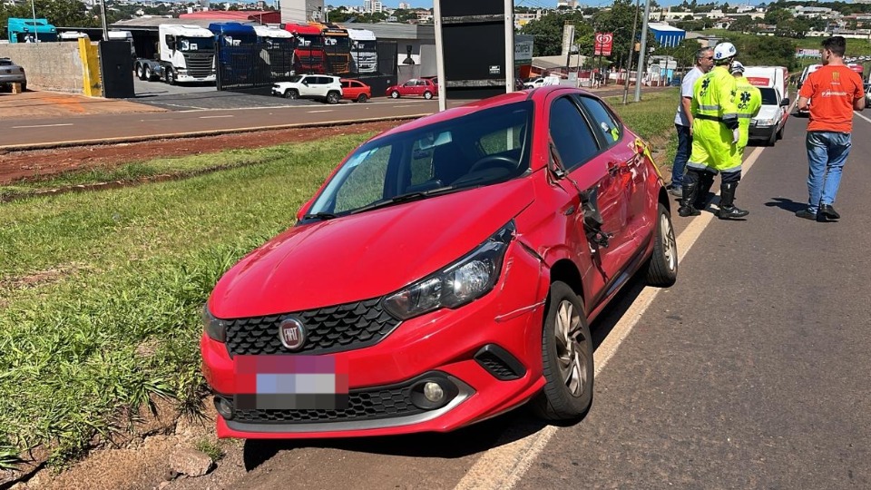 Carro cai em canaleta após forte batida na BR 277