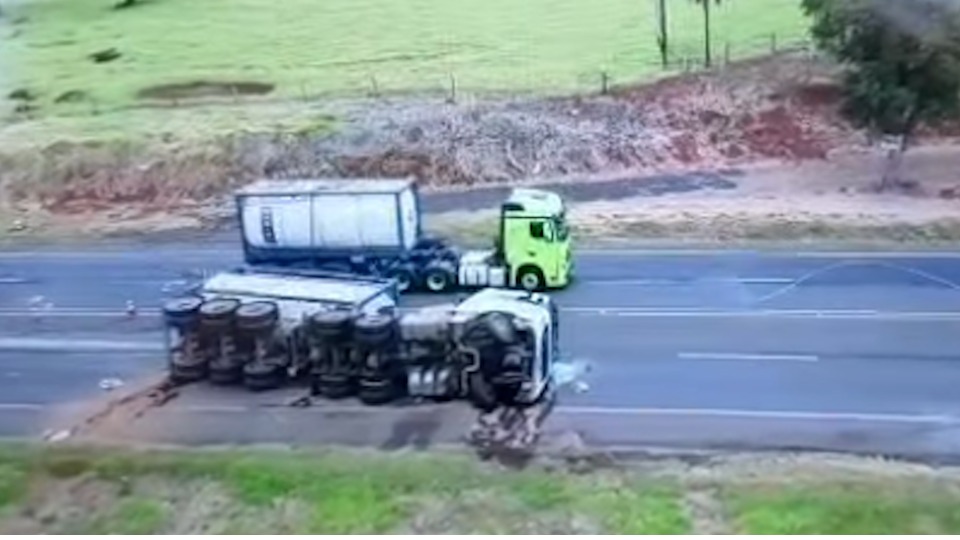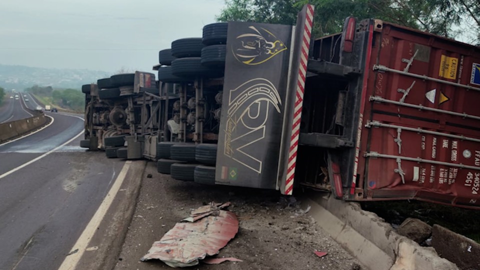 Caminhão carregado com Ácido Propiônico tomba e interdita a PR-444 em Arapongas