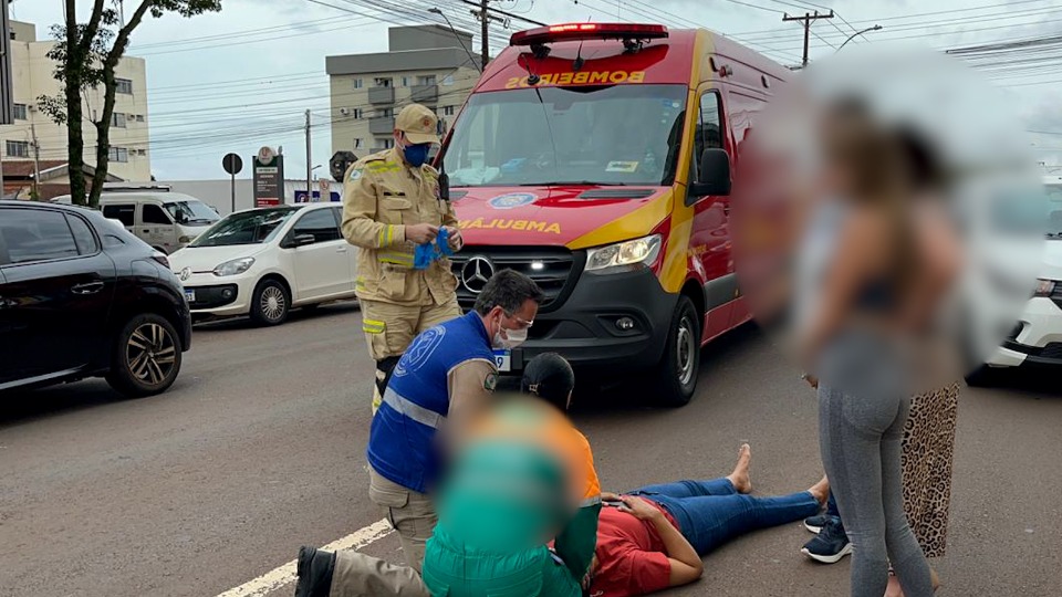 Batida entre moto e carro deixa mulher ferida no Centro de Cascavel