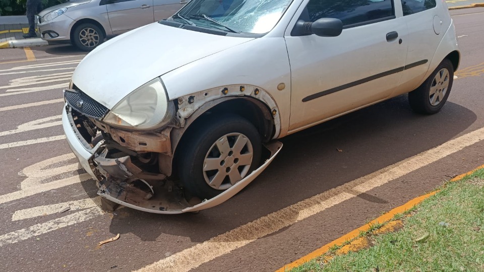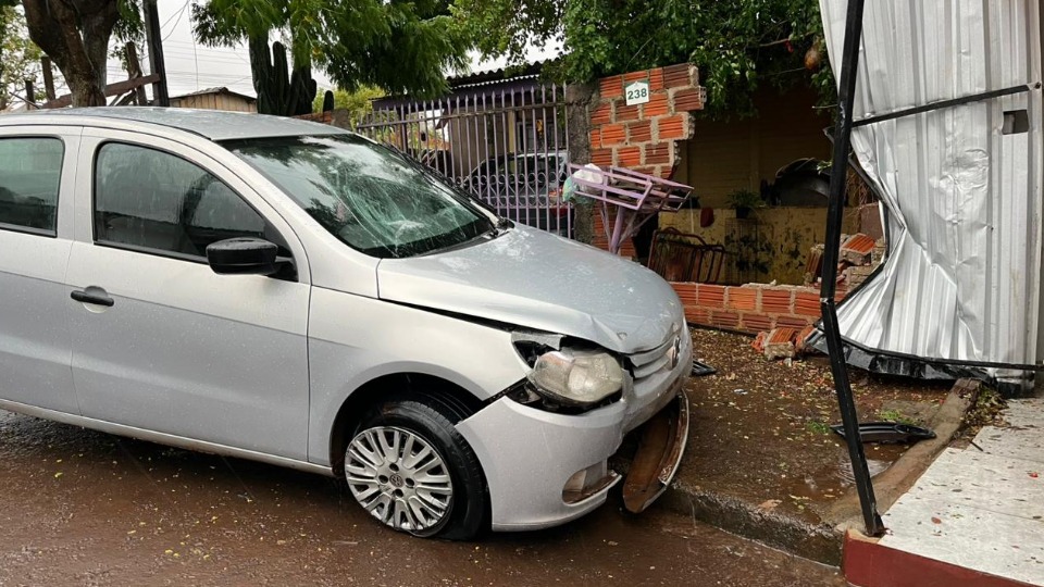 Carro atinge muro após batida com outro veículo em Cascavel