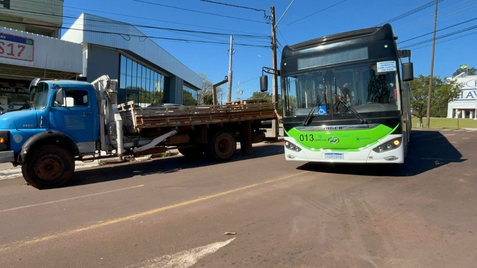 Ônibus elétrico se envolve em batida com caminhão em Cascavel