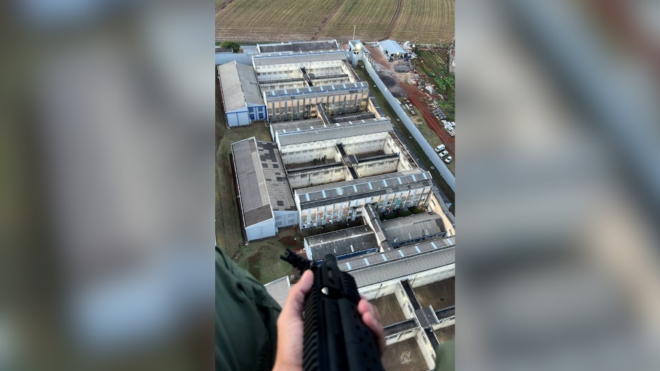 Imagens aéreas do helicóptero Falcão mostram operação na Penitenciária de Cascavel