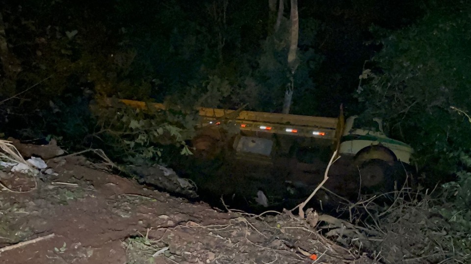 Caminhão desce sozinho e cai em ribanceira no Jardim Colmeia