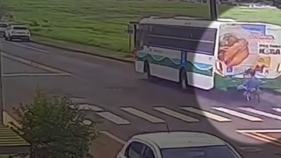 Pessoa é flagrada pegando "rabeira" em ônibus instantes antes de engavetamento em Cascavel