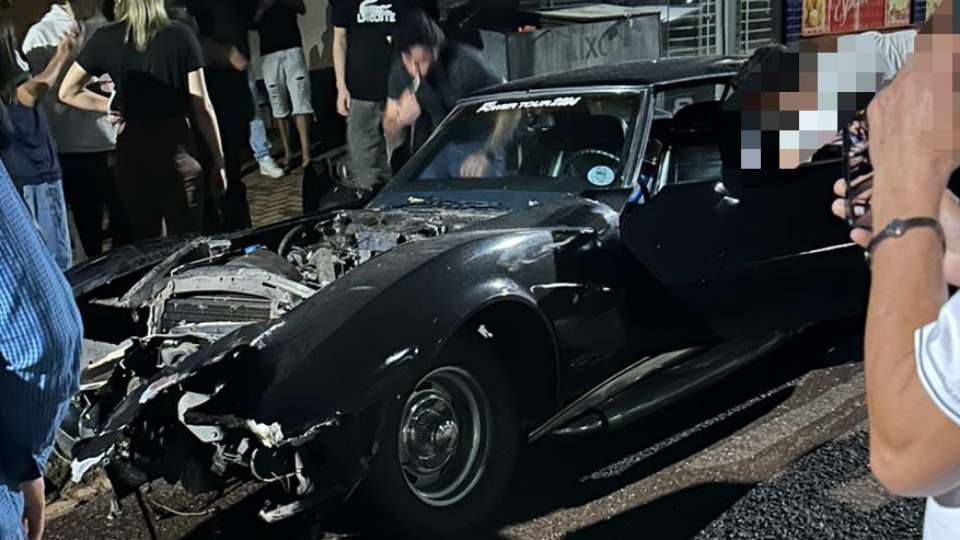 Após exibição, Corvette fica com frente destruída em Cascavel