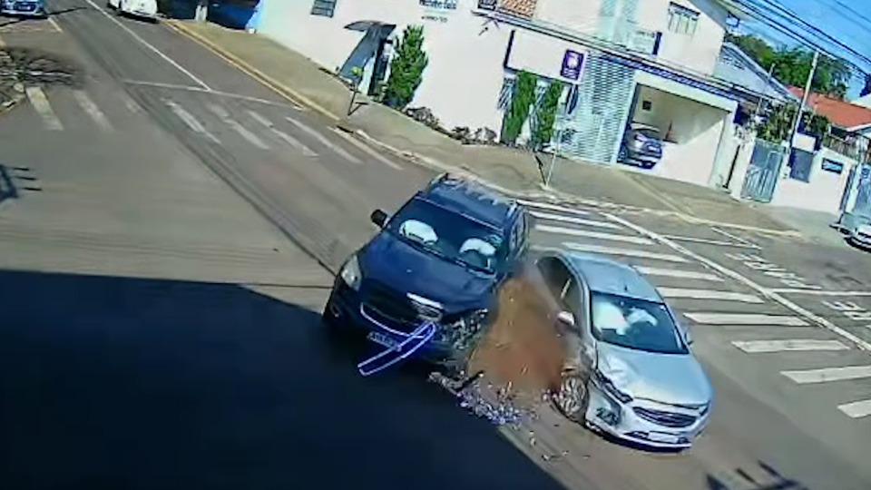 Câmera registra batida entre caminhonete e carro no Bairro Parque São Paulo