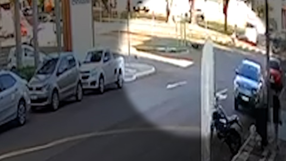 Câmera flagra momento antes de batida entre moto e viatura da PM no Centro de Cascavel