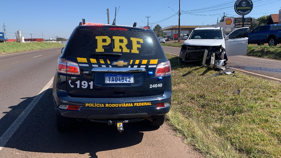 Veja momento que picape bate em guard rail na BR-277 em Cascavel