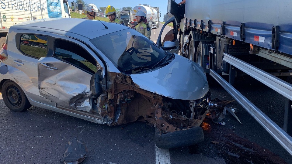 Acidente entre carreta e carro na BR-277 em Cascavel