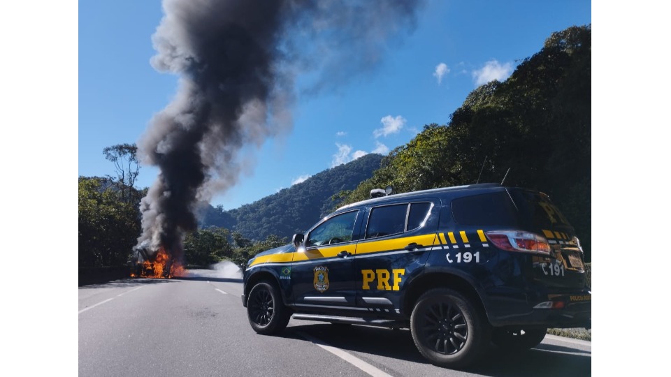 Ônibus é destruído pelo fogo na BR 277 em Morretes