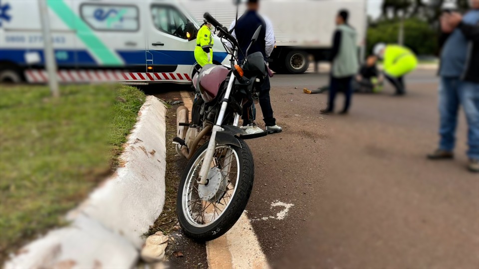 Batida entre carro e moto no Trevo da Portal deixa homem ferido