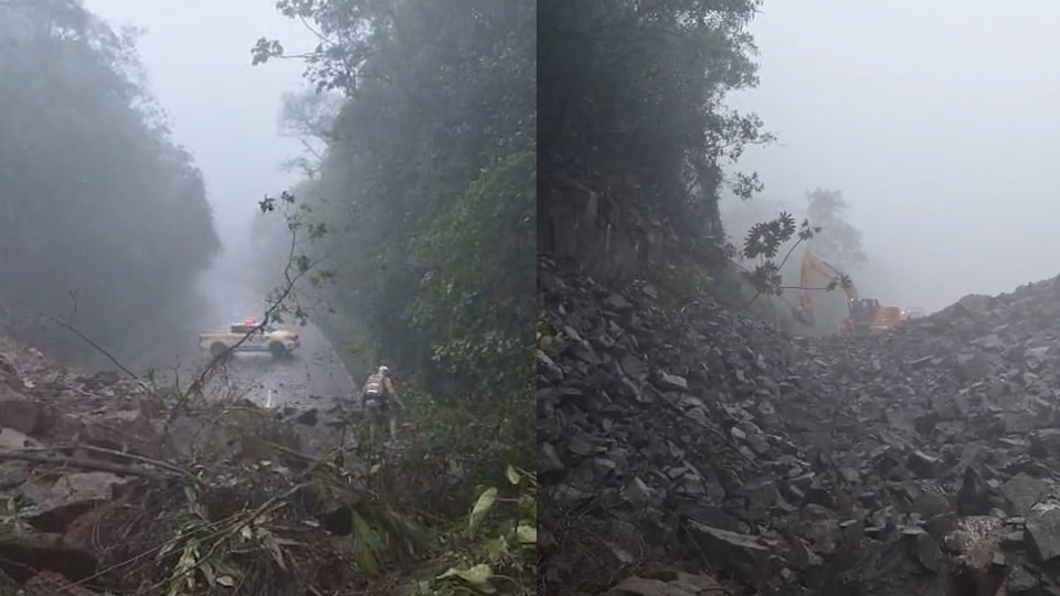 Queda de rochas interdita a SC-418, na Serra Dona Francisca, em Joinville; veja