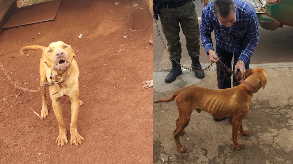 Cão da raça pitbull é resgatado em situação de maus-tratos em Cascavel