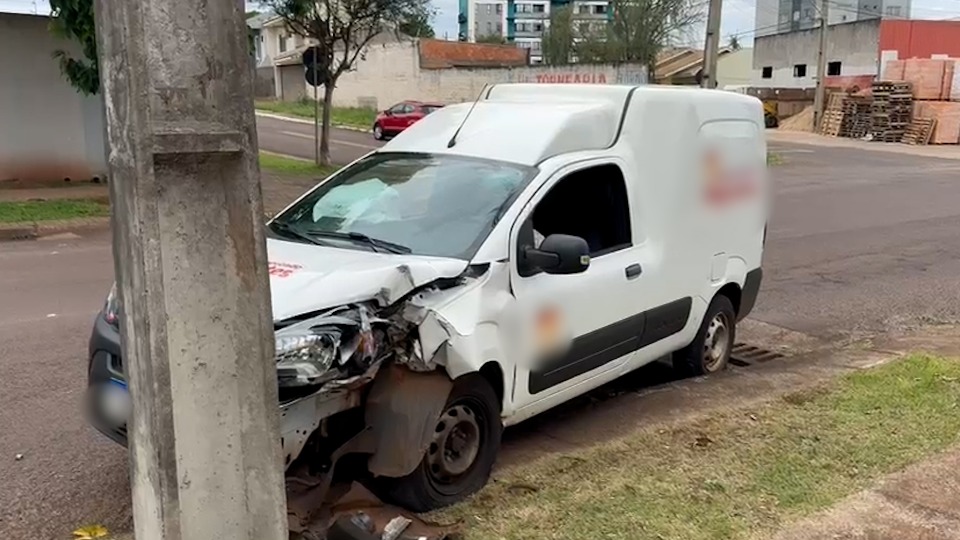 Homem fica ferido ao bater carro em poste no Bairro Alto Alegre, em Cascavel