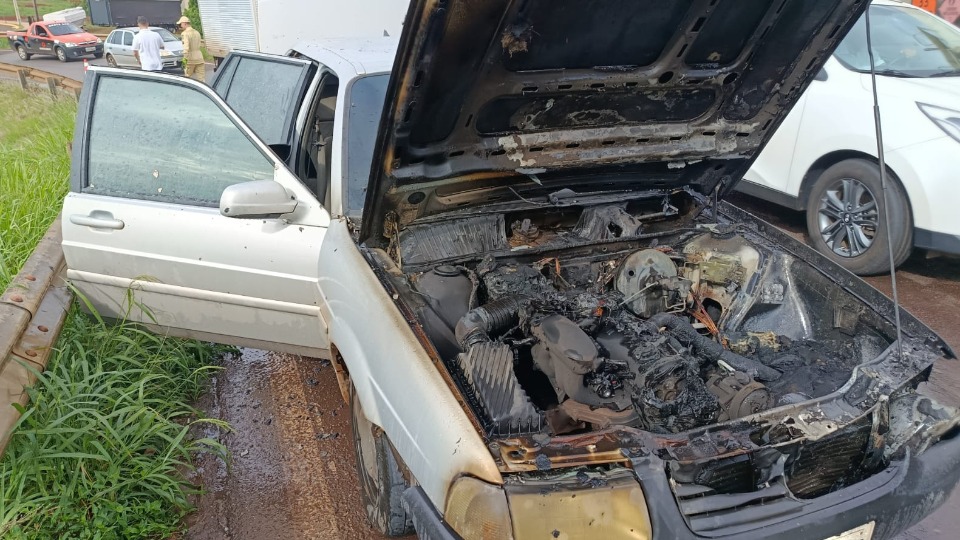 Incêndio destrói parte frontal de veículo em viaduto da BR-163 em Toledo