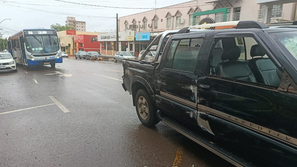 Batida entre ônibus e caminhonete é registrada no centro de Toledo