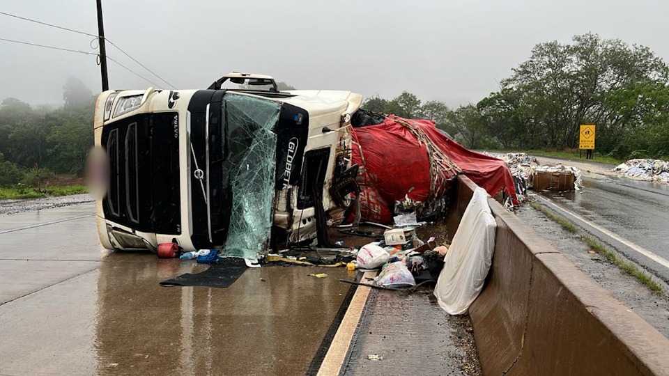 Motorista de carreta morre em tombamento na BR 163 em Lindoeste