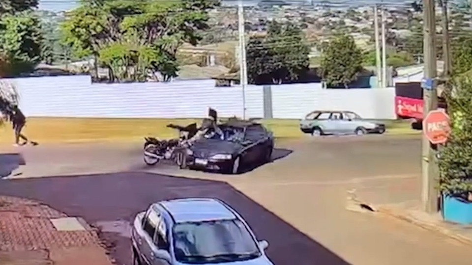 Veja batida que deixou motociclista gravemente ferido em Cascavel